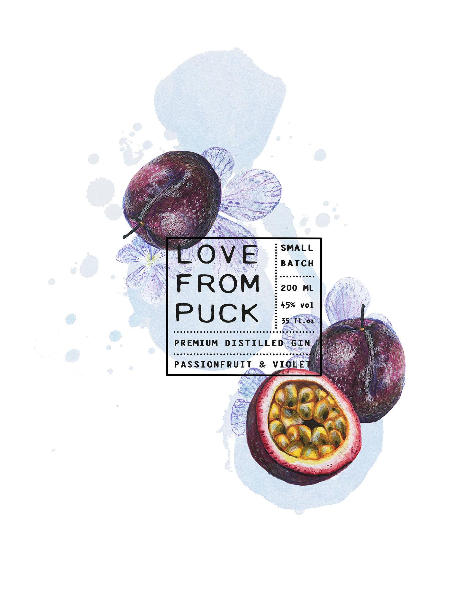 Midsummer nights dream themed gin packaging, self started.